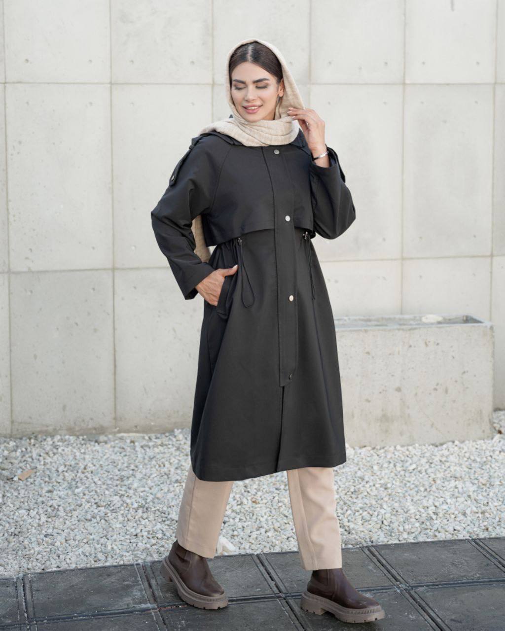 بارانی بلند زنانه کلاهدار – ضد آب، جنس سوپرسانتانا