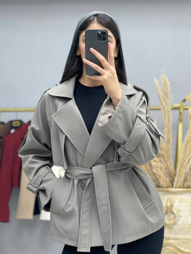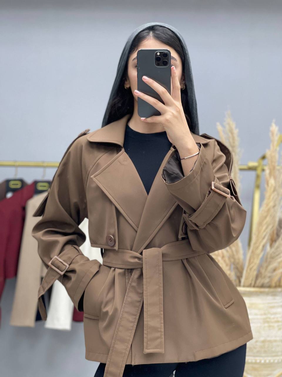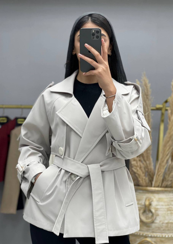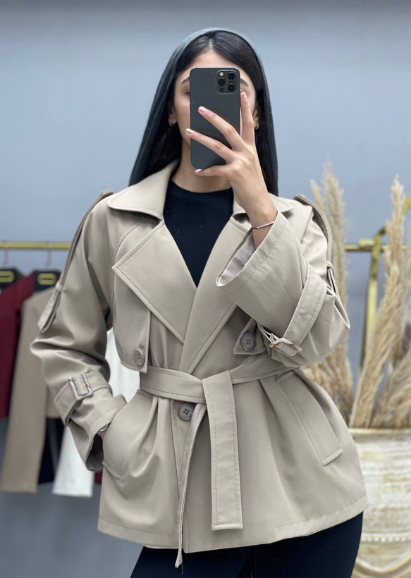 ترنچ کت کوتاه زنانه ضد آب – جنس سانتانا