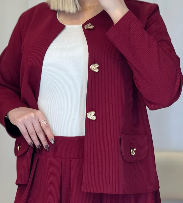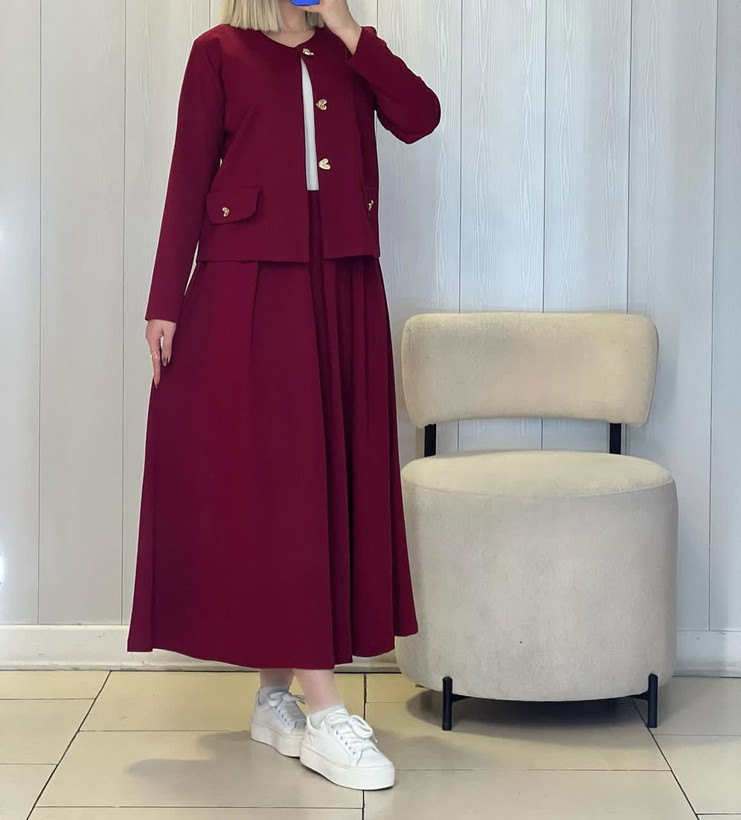 ست کت و دامن یلدایی دکمه قلبی زنانه دخترانه