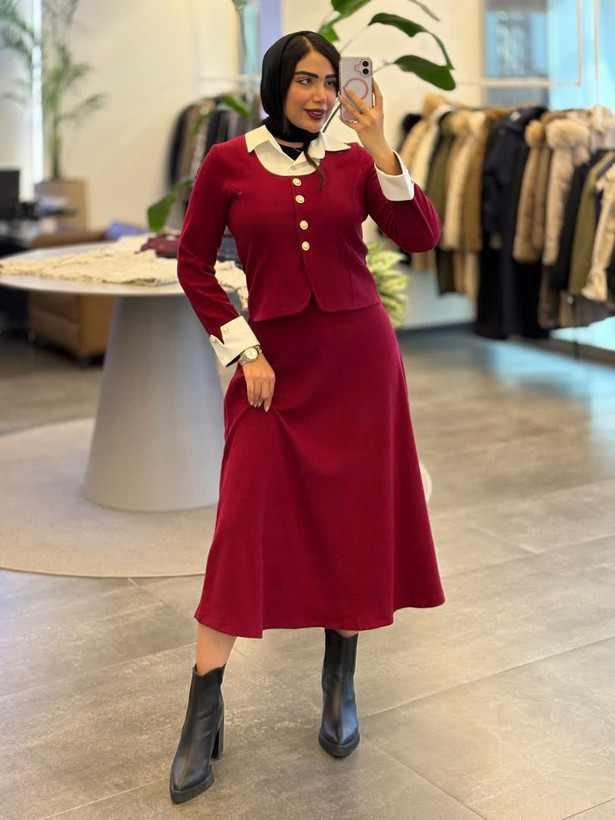 ست کت و دامن یقه سفید یلدایی زنانه دخترانه