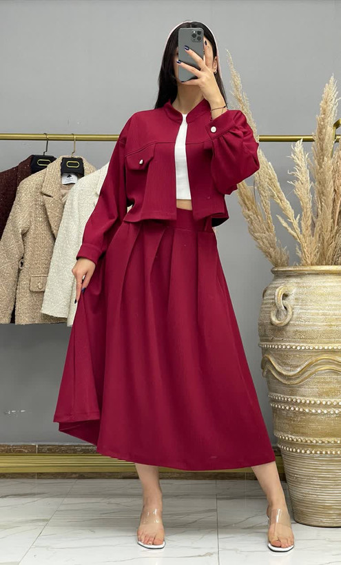 ست یلدایی بسیار زیبا که در عین سادگی خیلی شیکه و مناسب شب یلدا و مهمونی و دور همیاتون هست، این ست کت و دامن فری سایز مناسب سایزهای 36 تا 44 هست