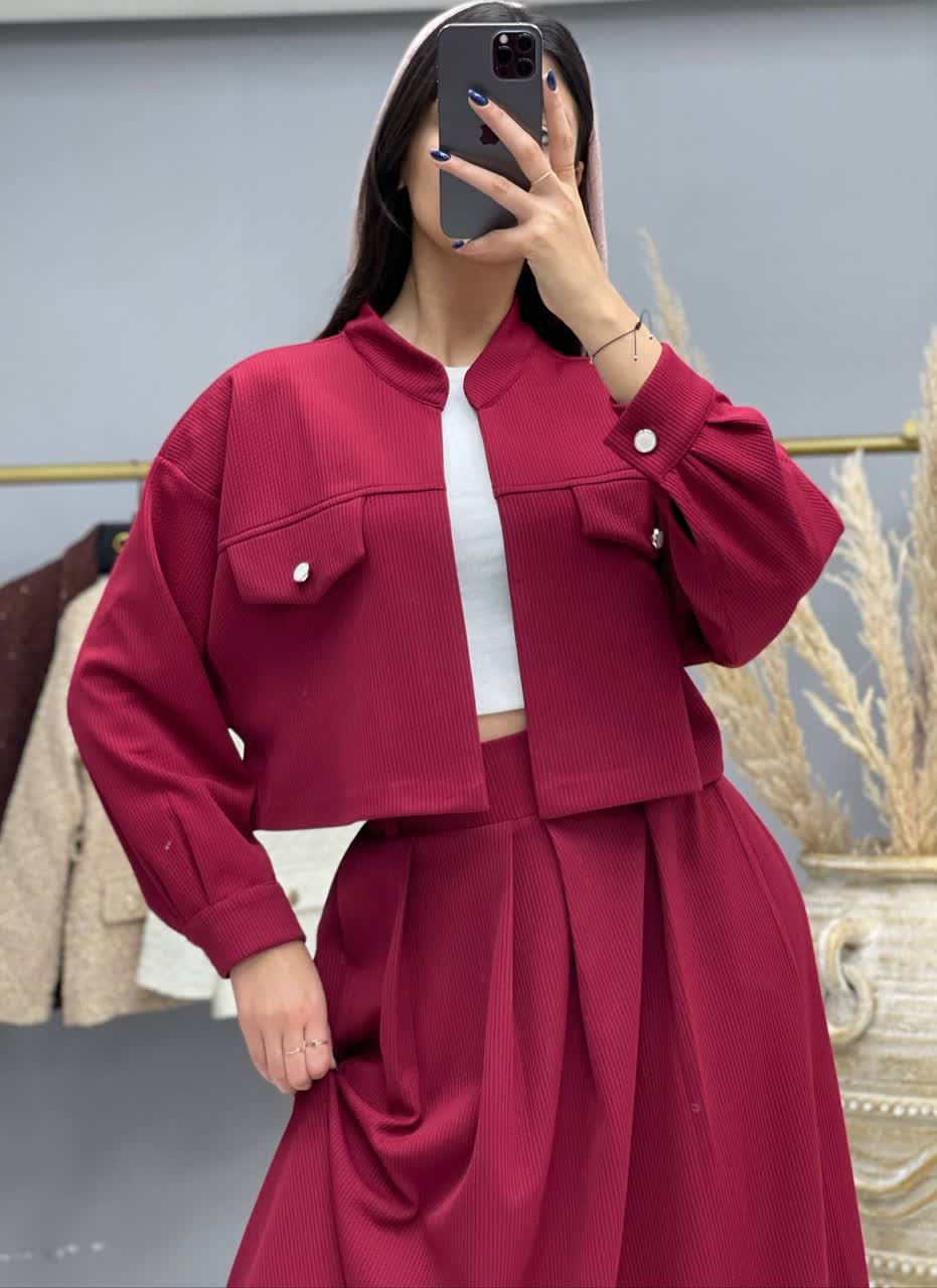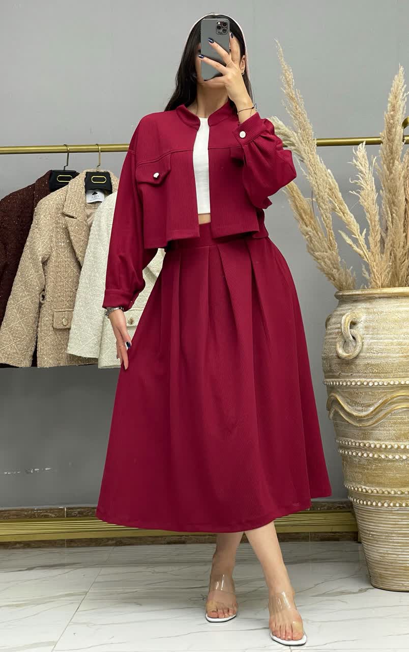 ست یلدایی بسیار زیبا که در عین سادگی خیلی شیکه و مناسب شب یلدا و مهمونی و دور همیاتون هست، این ست کت و دامن فری سایز مناسب سایزهای 36 تا 44 هست