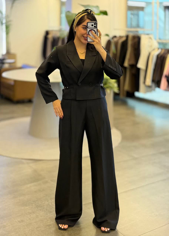 ست کت کراپ و شلوار بگ یه استایل اسپرت شیک که کمتر جایی میبیند، کنار کت و کنار شلوار حالت کمربند و سگک دارد که کمی کار رو جمع تر میکند، فری سایز مناسب سایزهای 38-40 تا 44-46 با جنس مازراتی کجراه که به هیچ عنوان پرز و دون نمیشه